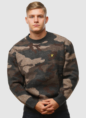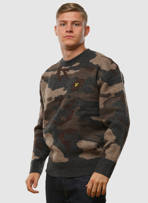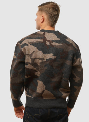 Heim Pullover mit Rundhalsausschnitt in gebürstetem Camouflage-Look – Schwarzstahl