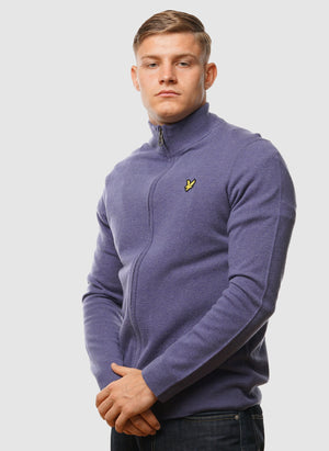 Lambswool Blend Zip Through Cardigan - Greystone Marl